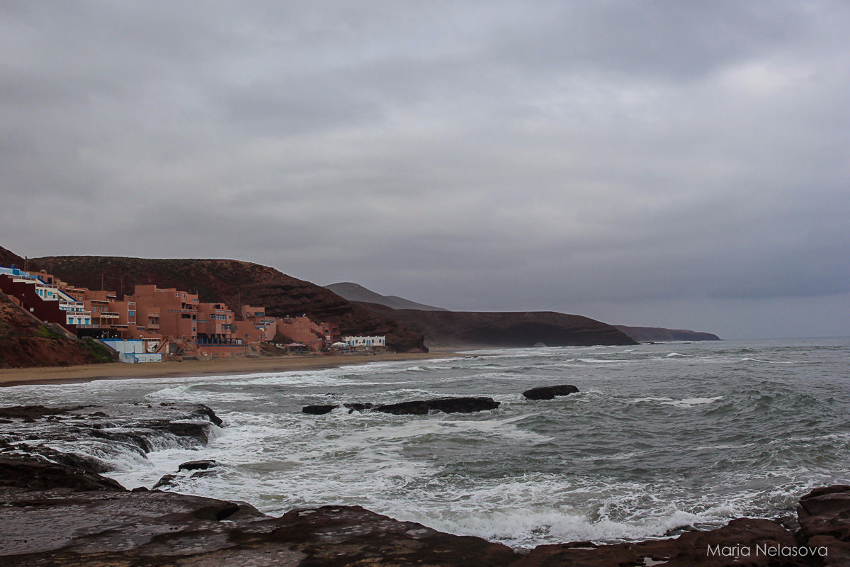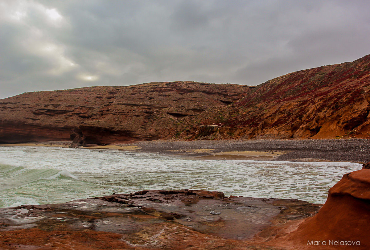 Не будем о грустном. Хочу вспомнить: Как мы ехали сотни километров ради этих скал. По дороге с осликами, автодомами и стадами коз; с остановками на тажин, кофе и крепости… Как увидели оранжево-красные своды и как отражается синева океана. Какой был закат на этом далеком и безлюдном пляже!